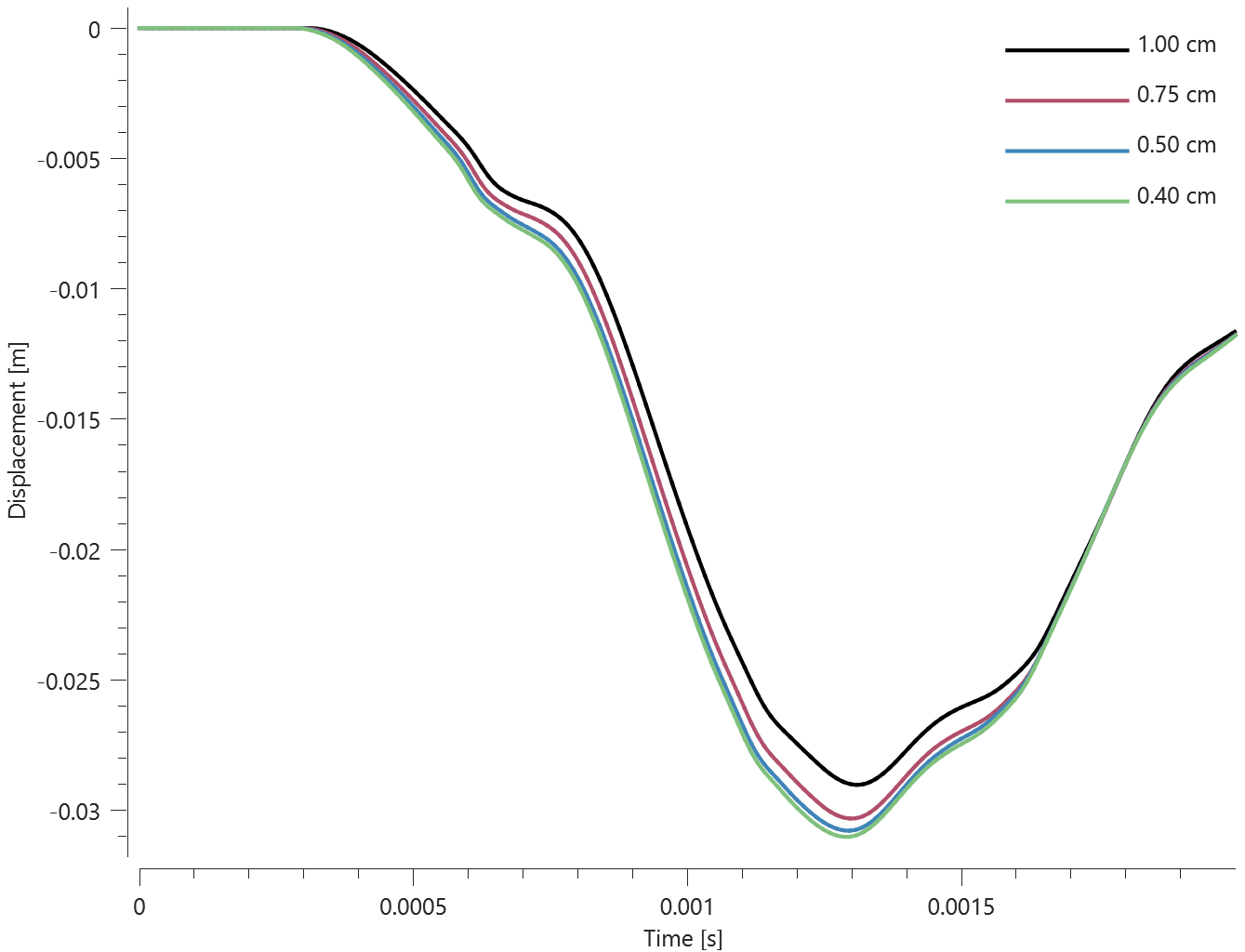 The maximum initial peak deflections at center of the plate from the CFD method is presented in Table 2 and Figure 4.